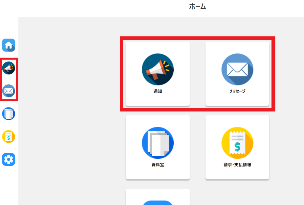 入居者マイページには、「メッセージ」「通知」機能があります。